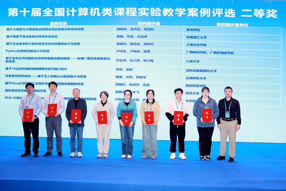 我院副院长、计算机与信息技术国家级实验教学示范中心主任卫志华教授受邀作了题为《课程思维链数据集构建方法及其赋能智慧课程实践》的大会报告,龚晓亮老师提交的《虚拟发动机性能监控模块开发》荣获优秀案例二等奖。
